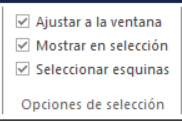 En la pestaña Seleccionar encontrará opciones adicionales que se aplican al ejecutar cualquier comando de selección. Estas permiten: